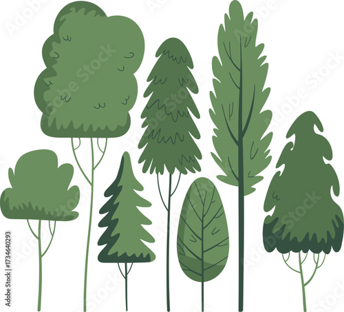© Mst Insanara Begum, Fototapeta premium Collection of Six Green Trees Vector Clipart with Natural Foliage