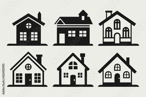 © BipashaSketches , Fototapeta premium Collection of six simple black house icons with various architectural styles