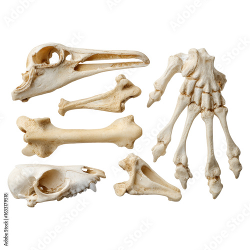 Fototapeta premium Collection of Small Animal Bones Including Bird and Rodent Specimens