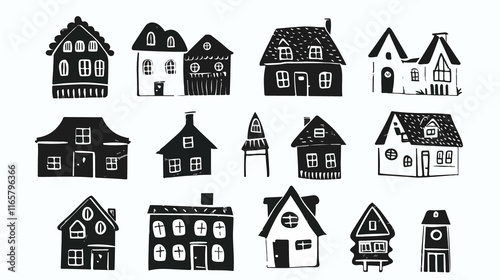 Fototapeta premium Collection of Small Tiny Paper Cut Cartoon Houses for Creative Designs