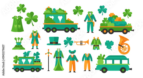 Obraz premium Collection of St Patricks Day Symbols and Festive Items. Vector...