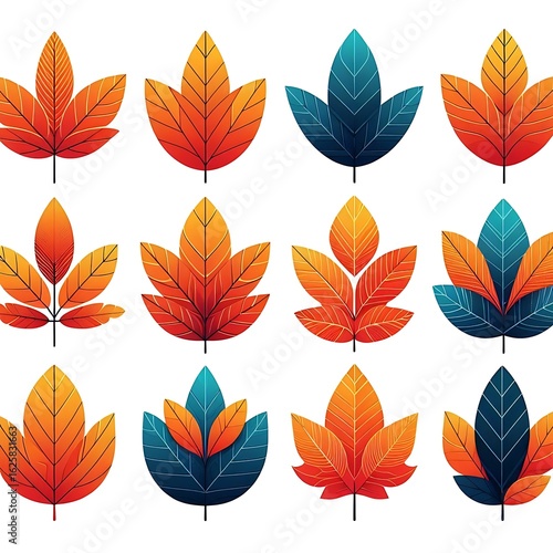© rasel1999, Obraz premium Collection of stylized autumn leaves in warm and cool colors isolated on white background