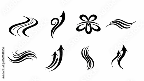 Obraz premium Collection of stylized black arrows and abstract wave elements for graphic design and logos