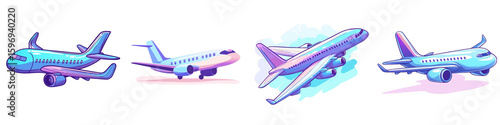 Obraz premium Collection of stylized illustrations featuring commercial airplanes,...