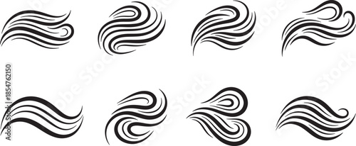 Obraz premium Collection of stylized tribal wave patterns and flowing abstract swirls, vector design elements for artistic decoration and dynamic graphic projects
