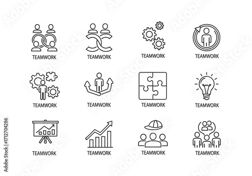 © mdHittu, Fototapeta premium Collection of teamwork and business icons isolated on white background