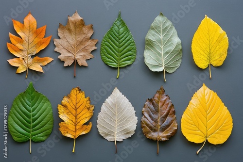 Fototapeta premium Collection of ten autumn leaves showcasing various colors and shapes,...