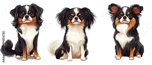 Obraz premium Collection of three dogs graceful Japanese Chins set isolated on white...
