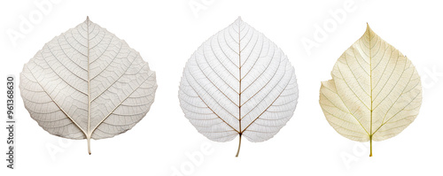 © tohceenilas, Obraz premium Collection of three dried leaves isolated on white background, Perfect for nature and botanical themes.
