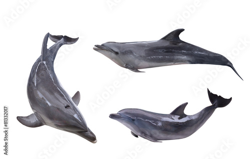 Fototapeta premium collection of three isolated grey dolphins