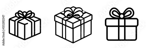 Obraz premium Collection of three outlined gift boxes with bows showcased in simple design style