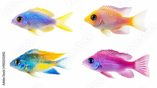 Fototapeta premium collection of tropical fish in various colors, isolated on white background, vibrant and detailed, marine life symbol,