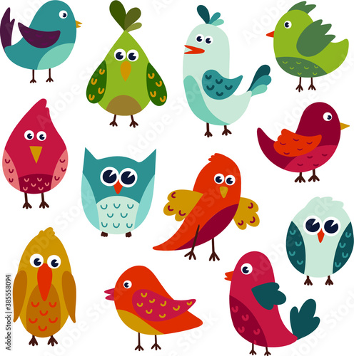 Fototapeta premium Collection of Twelve Cute Vector Cartoon Birds
