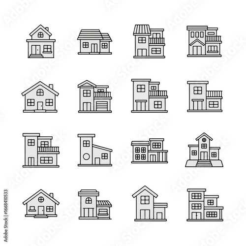 Fototapeta premium Collection of twelve house icons, showcasing different architectural styles...
