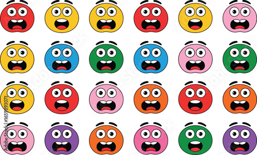 Obraz premium Collection of twenty colorful cartoon monster faces with big eyes and open...