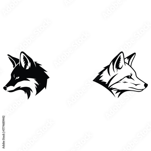 Obraz premium Collection of two stylized fox head vector illustrations. Wild animal profile...