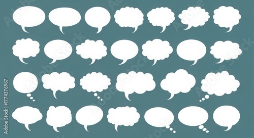 © nasima, Naklejka premium Collection of varied white speech bubbles and thought clouds for communication and dialogue icons illustration
