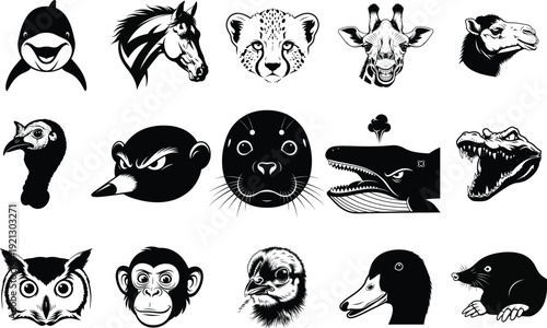 © vectbhuiyan, Obraz premium Collection of various animal heads in profile and front views
