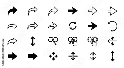 Naklejka premium Collection of various arrow icons and symbols, showcasing different directions and functions.