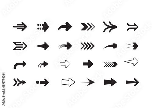 Naklejka premium Collection of various black arrow icons on white background.