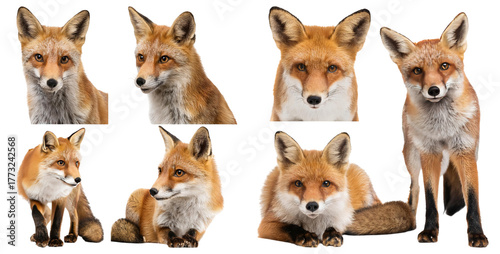 © Urwah, Obraz premium Collection of Various Fox Portraits on White Background, isolated on transparent background