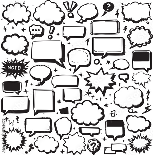 Fototapeta premium Collection of various hand-drawn speech and thought bubbles in a cartoon...