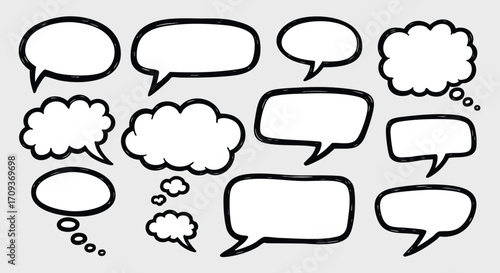 Fototapeta premium Collection of various hand-drawn speech bubbles and thought bubbles for communication design.