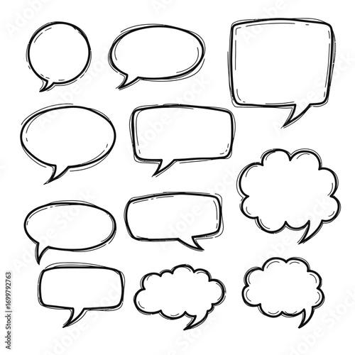 Obraz premium Collection of various hand-drawn speech bubbles in different shapes and styles.