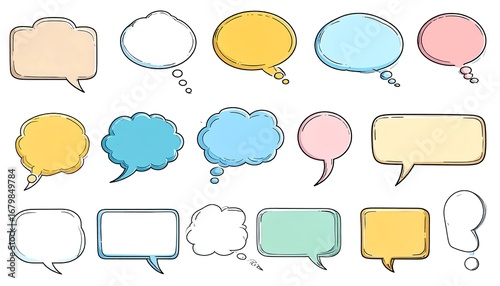 Obraz premium Collection of various hand-drawn speech bubbles in pastel colors