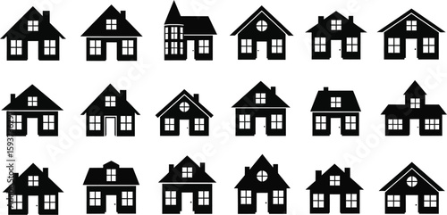 Fototapeta premium Collection of various house silhouettes in black and white pattern