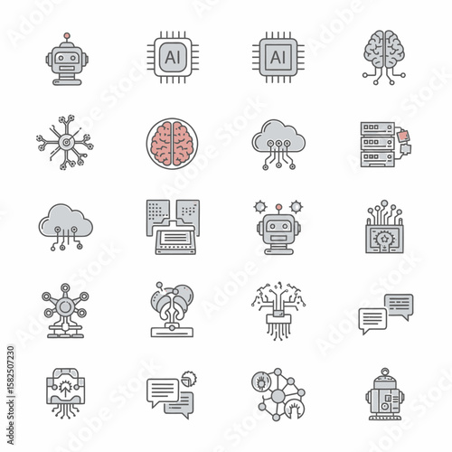 © Rifki, Naklejka premium Collection of various illustrated icons representing artificial intelligence and technology concepts.