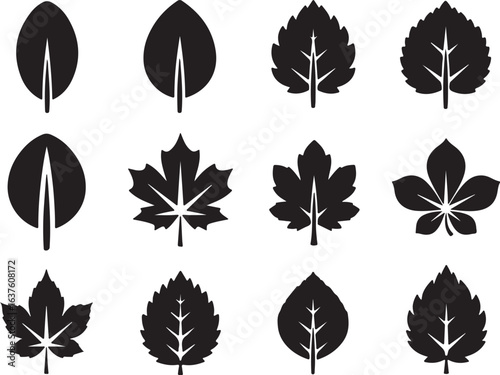 Obraz premium Collection of various leaf icons and silhouettes isolated on white background