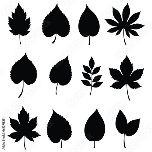 © nhpvect02, Fototapeta premium Collection of Various Leaf Silhouettes Isolated on White Background Botanical Illustration silhouette