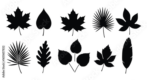 Fototapeta premium Collection of various leaf silhouettes on a white background