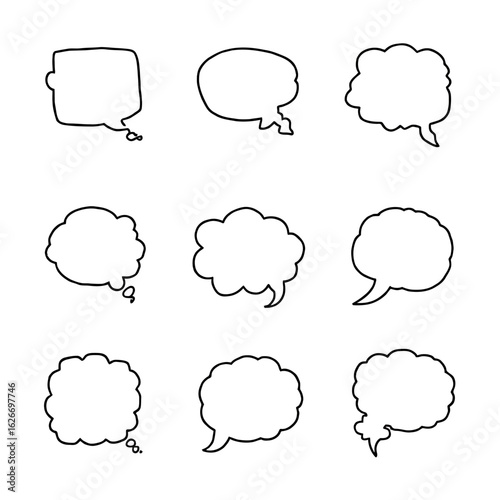Fototapeta premium Collection of various simple, hand-drawn speech bubbles.