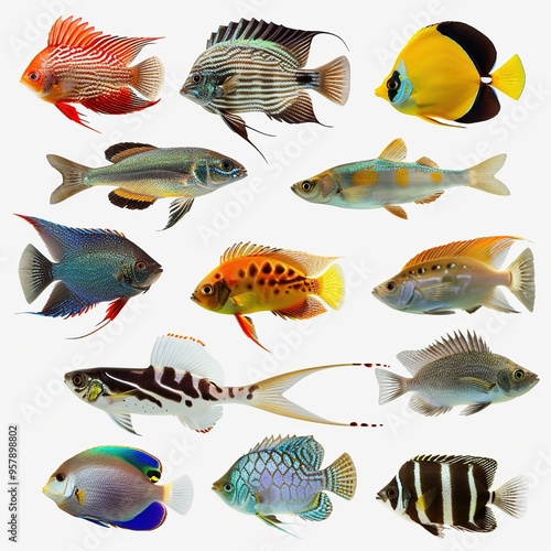 © Saad, Fototapeta premium Collection of various tropical and freshwater fish
