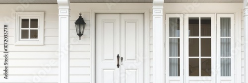 Fototapeta premium Collection of various white doors of different styles and designs isolated on white background, white, elegant, house