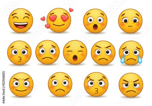 © png stock, Fototapeta premium Collection of various yellow cartoon emoji faces