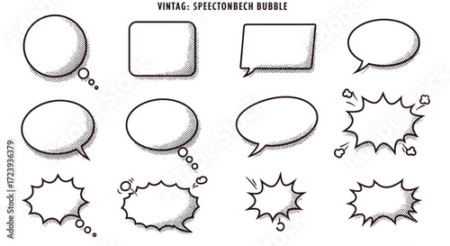 Fototapeta premium Collection of Vintage Speech Bubbles with Halftone Shading and Various Shapes.