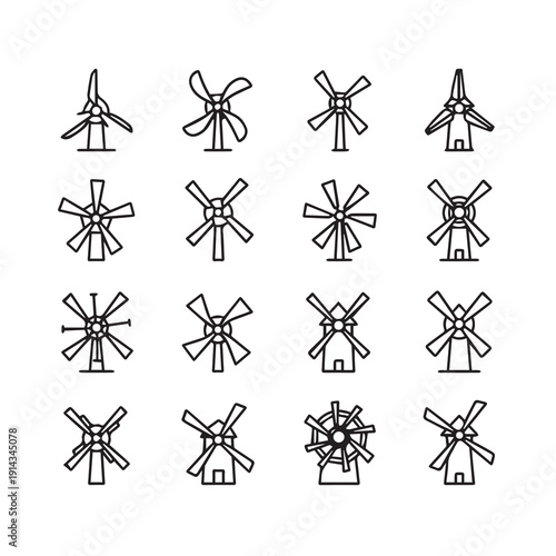 Obraz premium Collection of Windmill Icons, Simple Line Drawings, Various Styles