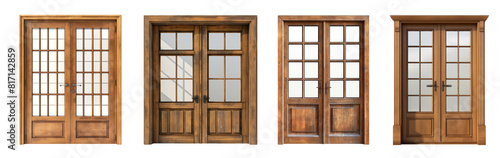 Fototapeta premium collection of wooden double doors with glass on transparent or white background