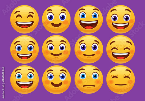 © Rusmani, Fototapeta premium Collection of Yellow Emoji Faces Expressing Various Emotions.