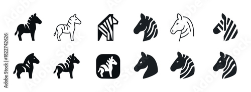 Obraz premium Collection of zebra icons and silhouettes in various styles