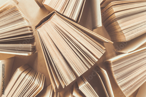 © HELP PEOPLE UKRAINE, Obraz premium Collection open books. Education background. Top view