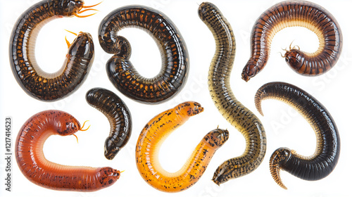 © Lumos Studio, Fototapeta premium Collection set of worms isolated on white background for nature and educational purposes