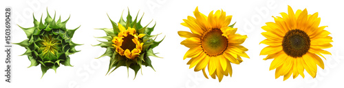 Fototapeta premium Collection sunflower flower evolution stages isolated on white background....