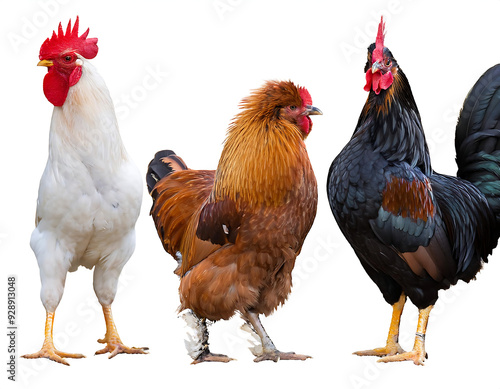 © Galeno, Fototapeta premium collection three white black brown chicken animal bundle isolated white background transparent png
