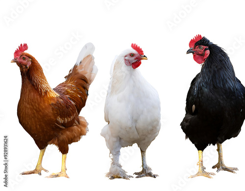 © Galeno, Fototapeta premium collection three white black brown chicken animal bundle isolated white background transparent png
