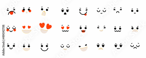 © Larisa Vladimirova, Naklejka premium Collection with Different emotions. Use for characters setting-up. Funny emoticon faces with facial expressions. Flat style in vector illustration.