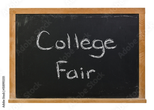 Obraz premium College Fair written in white chalk on a black chalkboard isolated on white